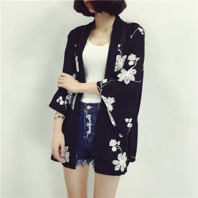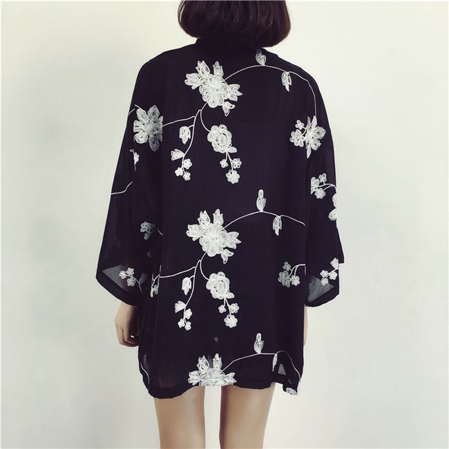 花模様刺繍のシフォン使用で 着心地の良い7分袖カーディガン 着丈 74cm 肩幅 38cm 袖丈 32cm 着丈74cm 肩幅〜38cm 袖丈32cm ポリエステル100% 中国製 ・全面花柄のフェミニンなシフォンを使用し、 動きやすく楽な着心地ですので長時間の結婚式・ パーティーにもピッタリです。